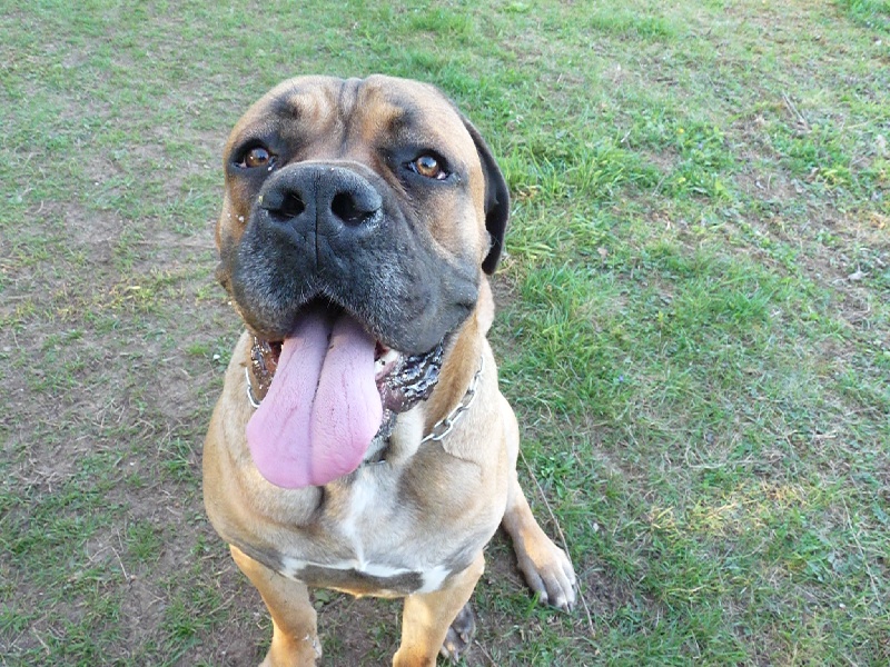 dentition complete ,articulé presque en pince axes en tete presque paralleles,sujet puissant avec une tres forte ossature,belle poitrine,ex format,1 peu laxiste dans les poignées,robe fauve,allure facile