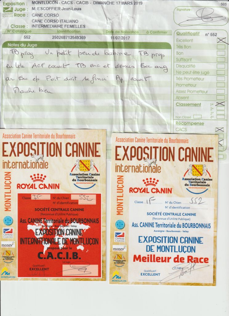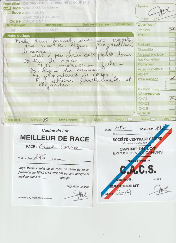 1 er EXELLENT,MEILLEUR DE RACE ,CACS 3 eme meilleurs du groupe 2 !